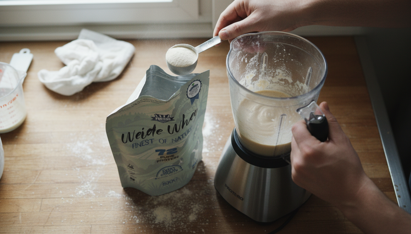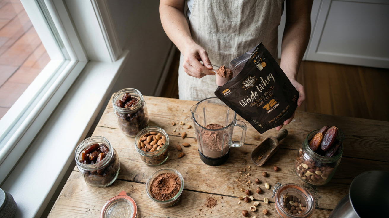 GRASS-FED WHEY PROTEIN AUS ECHTER WEIDEMILCH MIT ROHKAKAO GEMISCHT ZUM SELBER SÜSSEN