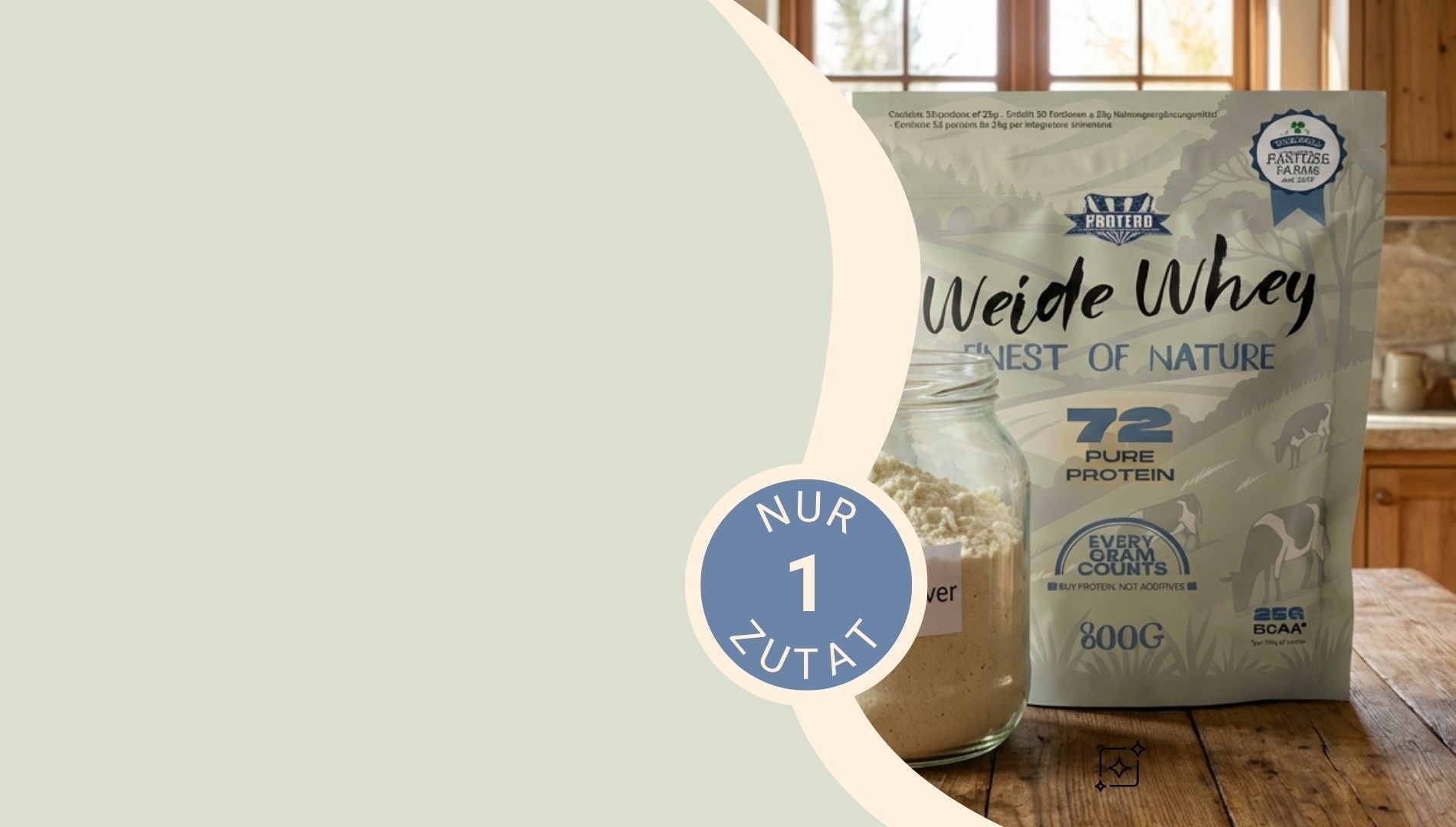 Das Protero Protein72 ist entsprechend weniger verarbeitet als ein höherprozentiges Eiweißpulver. Es werden vor allen Dingen die hochwertigen Fettsäuren der Weidemilch erhalten bevor das Whey sprühgetrocknet wird.